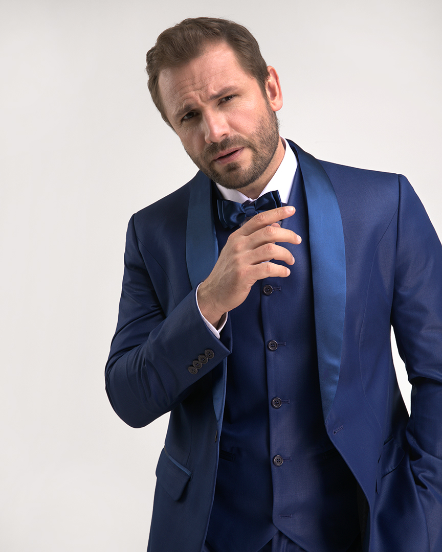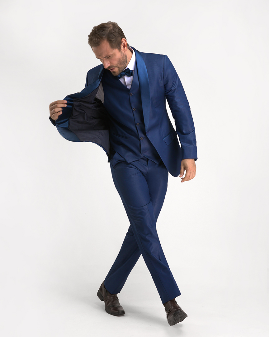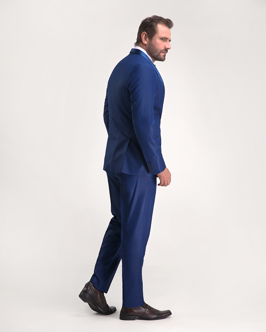 Smoking Azul Royal é uma ótima escolha para quem procura uma composição com um ar moderno sem perder a elegância. Pode ser usada tanto em ocasiões diurnas quanto noturnas, combine com camisa rigor e gravata borboleta ou vegas.