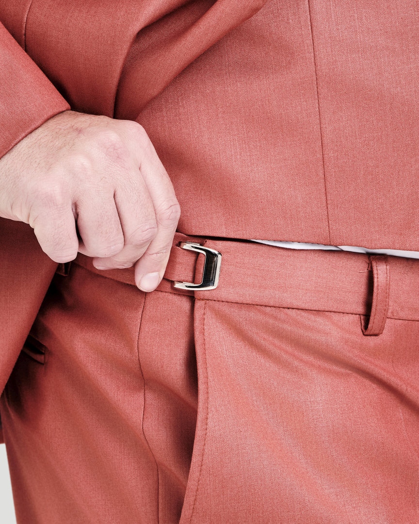 O terno terracota é uma ótima escolha para quem procura uma composição criativa e moderna sem perder a elegância.