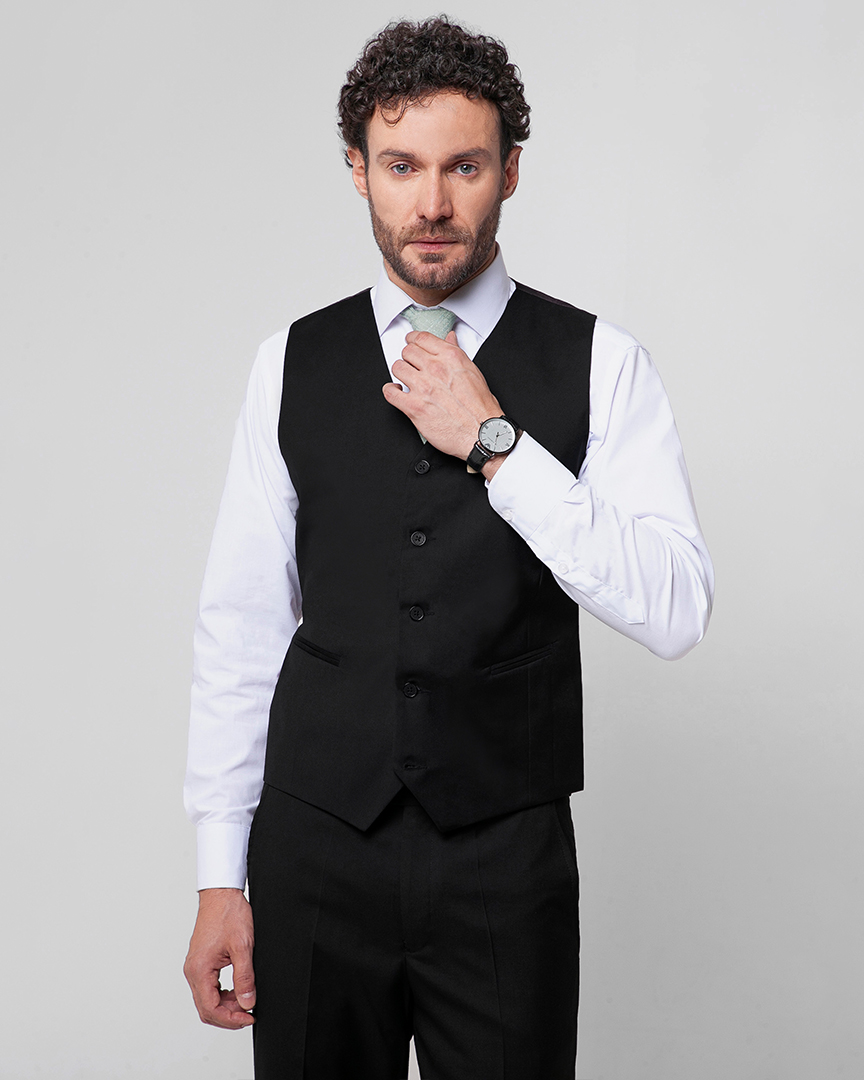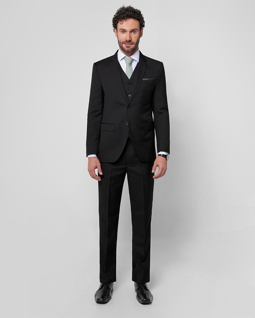 - Terno Slim Fit Poliviscose Savile Preto é composto por: Paletó, calça e colete