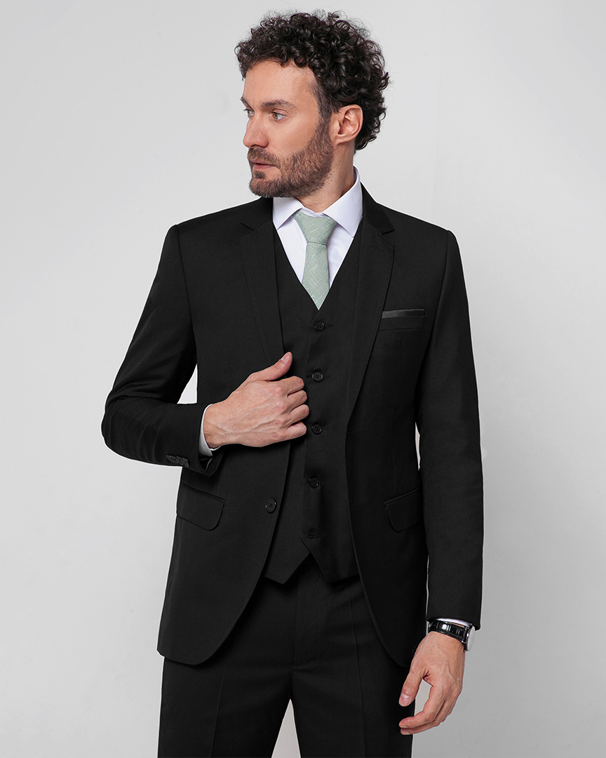 O terno savile Preto é uma ótima escolha para quem procura uma composição criativa e moderna sem perder a elegância.