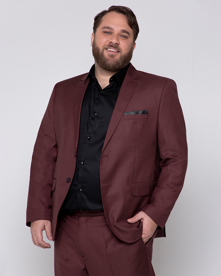 — Paletó com barra da manga pronta e calça sem regulagem na cintura