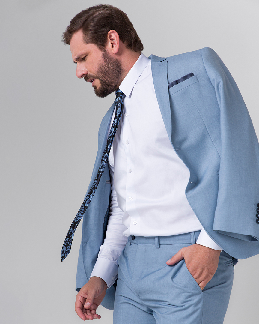 O tecido poliviscose é um tecido sofisticado que atende aos mais exigentes gostos com excelência,  proporcionando um ótimo acabamento nas peças e um perfeito caimento no corpo,  formando uma apresentação impecável para o homem que busca um traje moderno com elegância.